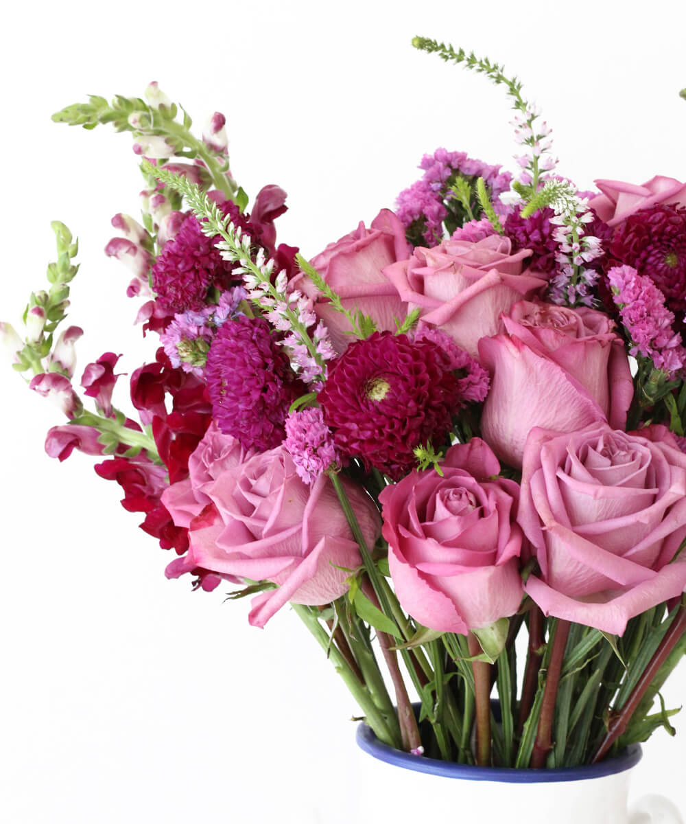 All the glamour, all the allure with THE BEAUTY QUEEN. Get ready to be captivated by this charming arrangement featuring pinky mauve Cool Water roses, Dahlia bulbs, Snapdragons, Veronica, and statice. An elegant addition to any space. Perfect to gift for birthdays, anniversaries, house warmings, special occasions, congratulations, friendships, just because, arranging parties, and more! Part of our limited time Dahlia Collection. Delivered to your doorstep. Ready to arrange. All boxes include complimentary floral shears and a card. Show us how you #BloomYours! *Please note that all flowers are FARM FRESH. Upon arrival, trim around 3-5 cm, place in fresh water, and allow 24-48 hours for full bloom. Tag us on instagram to show us how you #BloomYours!
