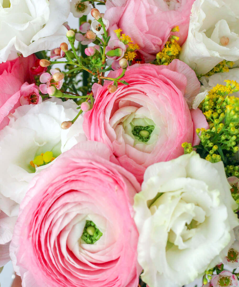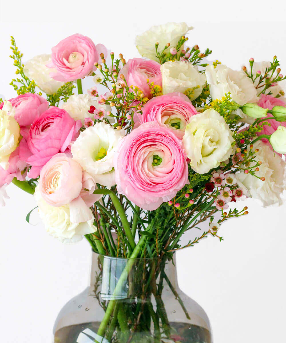 Embrace the sweetness with this delicate, cloud-like arrangement. THE CUPCAKE features beautiful pink ranunculus with lisianthus, waxflower, and playful solidago. A soft and elegant addition to any space. Part of our Valentine's Collection. Great for anniversaries, love, special occasions, birthdays, or just because! Arrange solo or with loved ones. Delivered to your doorstep. Ready to arrange. All boxes include complimentary floral shears and a card. Show us how you #BloomYours! *Please note that all flowers are FARM FRESH. Upon arrival, trim around 3-5 cm, place in fresh water, and allow 24-48 hours for full bloom. Tag us on instagram to show us how you #BloomYours!