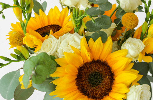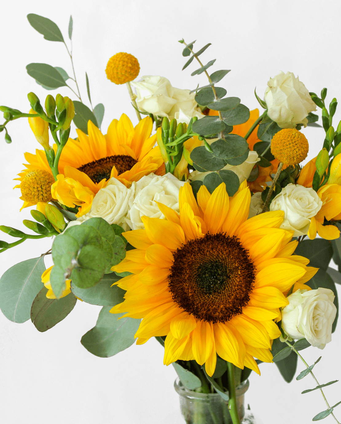 Say namaste to THE SERENITY featuring bright sunflowers, garden spray roses, fragrant freesias, pops of craspedia, and soothing eucalyptus! You'll be walking on sunshine with this arrangement. Perfect to spread happiness and brighten someone's day! Great for birthdays, just because, sympathy, friendship, and love. Delivered to your doorstep. Ready to arrange. All boxes include complimentary floral shears and a card. Show us how you #BloomYours! *Please note that all flowers are FARM FRESH. Upon arrival, trim around 3-5 cm, place in fresh water, and allow 24-48 hours for full bloom. Tag us on instagram to show us how you #BloomYours!